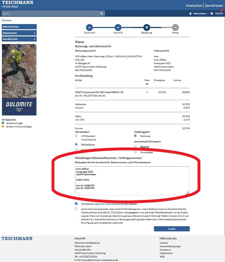 Unbedingt beim Bestellvorgang Kasse in dem Mitteilungsfeld die dort geforderten Angaben machen.